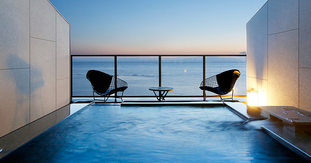 島原城から最もアクセスしやすい海沿いの温泉宿で、宿泊者以外でも日帰り入浴が可能な貴重な施設です。露天風呂は有明海に面しており、海風を感じながら湯に浸かる開放的な空間が魅力です。