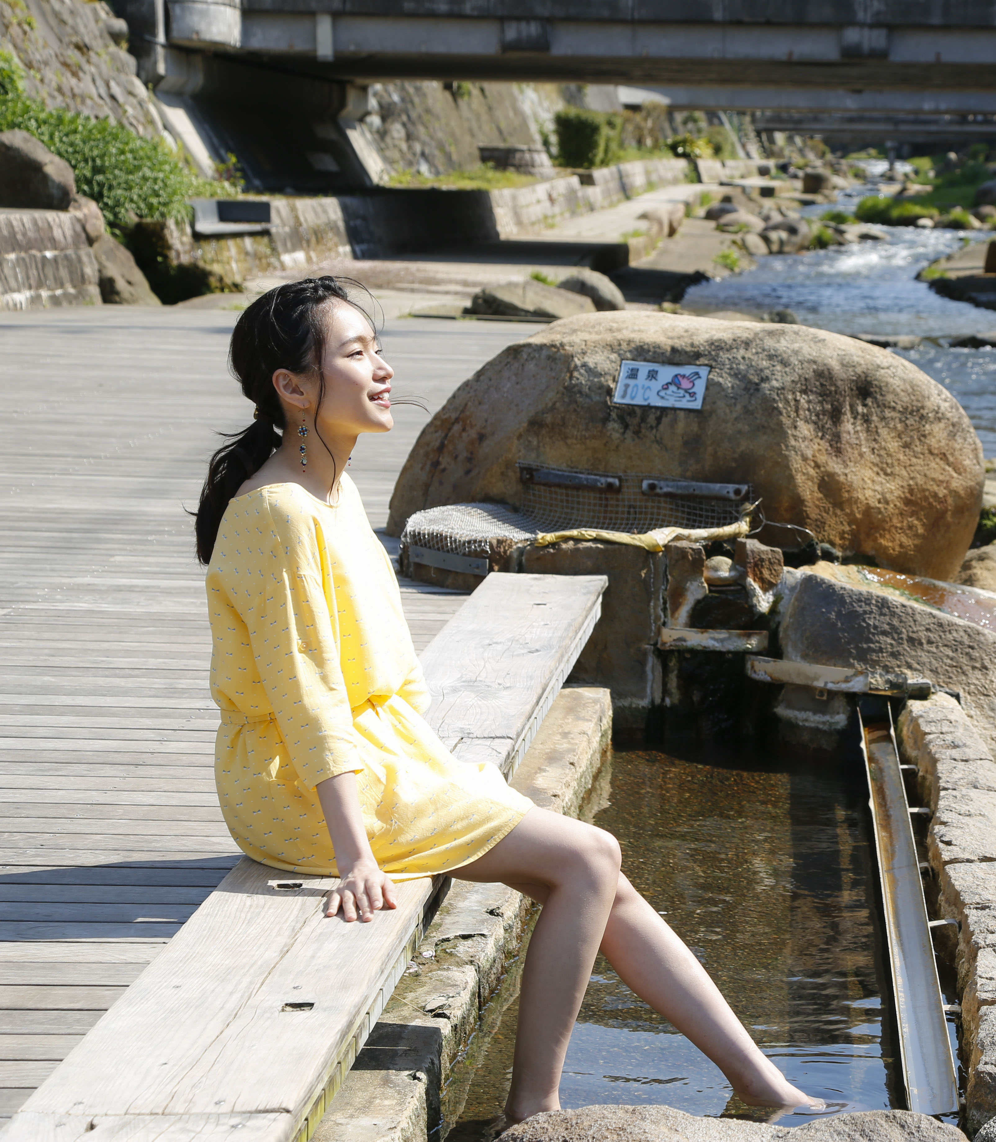温泉街は川沿いにまとまり、宿泊施設や足湯が点在しています。
